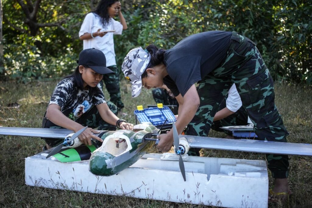 Deep in the forest, at their base camp, Htet now trains others in drone flight and navigation. In one case, he’s training an all-female team.